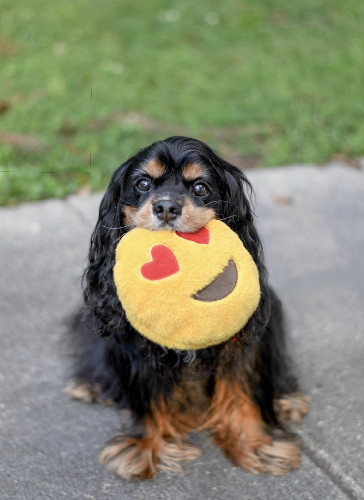When masks were essential, Milo and his handler/mom did their part in spreading happiness during such a trying time for nursing home residents with their matching emojis.