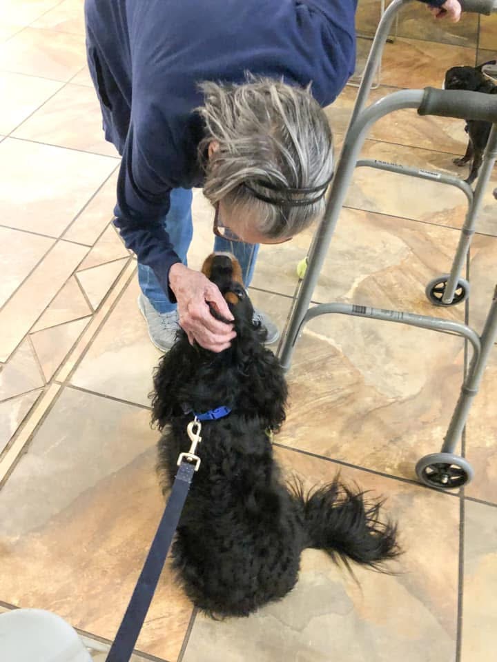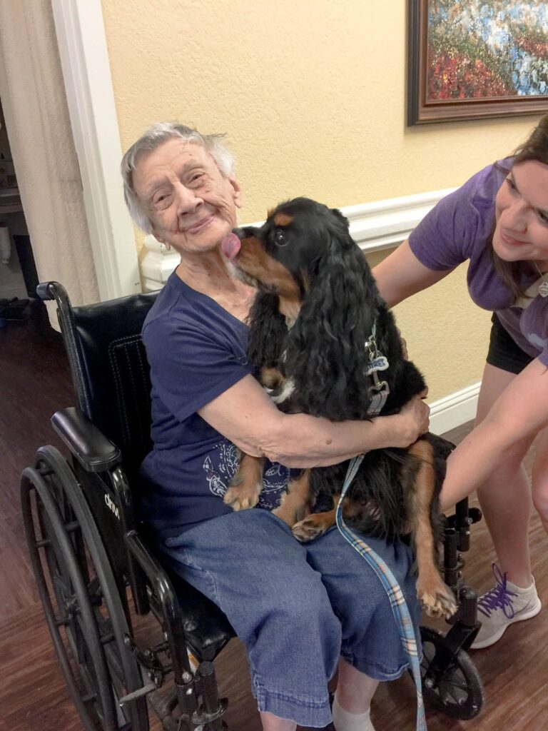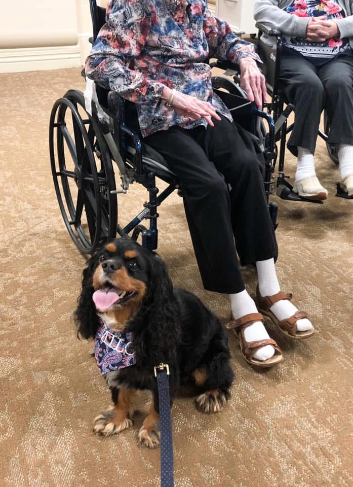 Goosey’s big brother Milo, also a Cavalier King Charles Spaniel, now 13 years old, retired from therapy work shortly after the pandemic as his Mitral Valve Disease progressed. He enjoys mentoring Goosey.